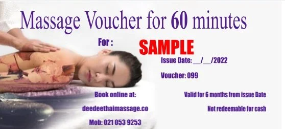 Buy your gift voucher in the Dee Dee Thai Massage Shop or for an e-Voucher :